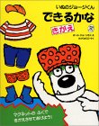 さて、しゅんが自分でできるのは、服をぬぐこと。お風呂に入るとき、わたしがついうっかりズボンをぬがせると、しゅんは「じぶんで!」と怒り、もう一回はいて、自分でぬぎます。『いぬのジョージくん できるかな【きがえ】』(ポール=ジョージ作/さとりまりこ訳/あかね書房)は、ジョージくんが服を着がえようとするお話です。着せかえページがついていて、お話を読みながら、マグネットのシャツやズボンなどをはだかんぼうのジョージくんに着せることができます。パンツを頭にかぶっ